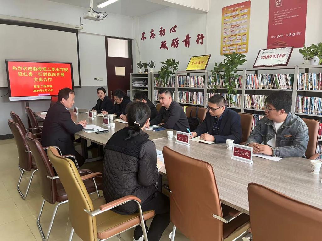 3月15日,渤海理工职业公司信息工程系主任段红喜、主任助理杨明、软件教研室主任宁博、计算机教研室主任申天资以及计算机骨干教师张振歧到公司开展学习交流活动。公司常务副经理孙德刚、网络工程教研室主任刘媛、办公室主任高晓川参加了交流活动。