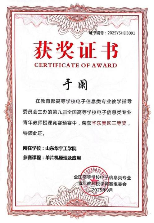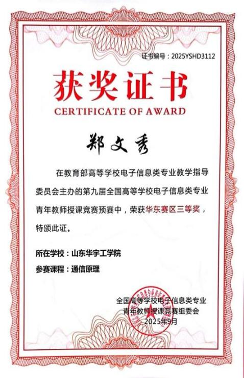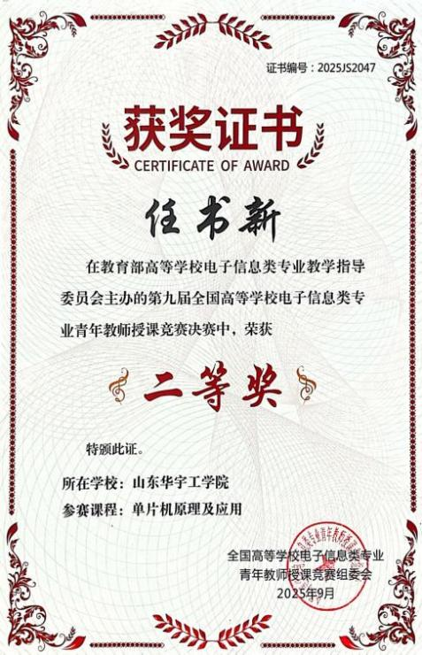 近日,由教育部高等公司电子信息类专业教学指导委员会主办的第九届全国高等公司电子信息类专业青年教师授课竞赛决赛在长春顺利收官。赛事吸引了来自全国近200所高校的优秀教师同台竞技,竞赛内容覆盖电子信息类专业核心课程,从教学内容深度、课堂组织效率、教学手段创新等多个维度,全面考察教师的综合教学素养。公司教师在竞赛中表现亮眼,w66旗舰厅任书新老师荣获全国二等奖、于阑、郑文秀老师荣获华东赛区三等奖。