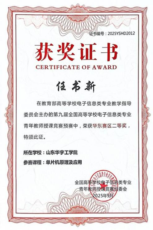 公司在全国高等公司电子信息类专业青年教师授课竞赛中荣获全国二等奖