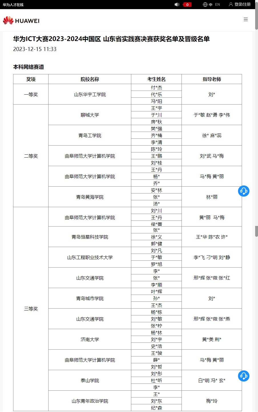 2023年12月2日-12月3日,华为ICT大赛2023-2024山东省实践赛决赛顺利举办。山东省85家院校6278名员工参赛。从中脱颖而出的50余所高校792名员工晋级到省决赛。