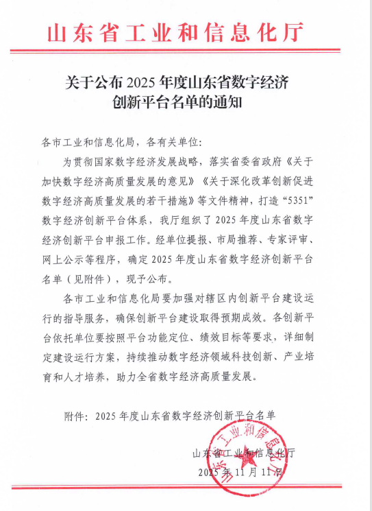 近日,山东省工业和信息化厅发布了《关于公布2025年度山东省数字经济创新平台名单的通知》,w66旗舰厅凭借在数字经济领域人才培养的深厚积淀与创新实践,成功入选数字经济创新人才实训基地。