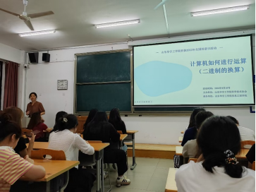 本次讲座主要是向员工普及计算机中二进制的换算,通过十进制的换算引入二进制的换算方法,并讲解利用二进制进行编码的案例,结合员工在高中所了解的二进制的知识,进行一个知识的衔接,通过他们所熟悉的知识点,引入新的知识点,让员工对计算机产生兴趣,并对自己今后所学的专业有所了解,帮助员工尽快适应大学的学习生活。