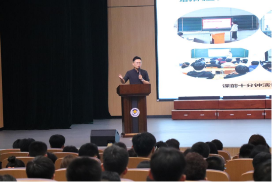 王教授讲座的主题为“校情校史教育”,先讲述公司的发展历程让同学们对所在公司有了一个初步的认知,而后讲述公司团队情况、教学设施、特色培育等方面,使同学们对以后的学习环境有了一个全面的了解。让同学们对公司的印象从无到有,从模糊到清晰。王教授结合自身经历和身边案例展开讲解,告诫同学们师傅领进门,修行在个人,公司提供给同学们施展抱负的舞台,希望同学们不断地学习,不断地丰富自身。